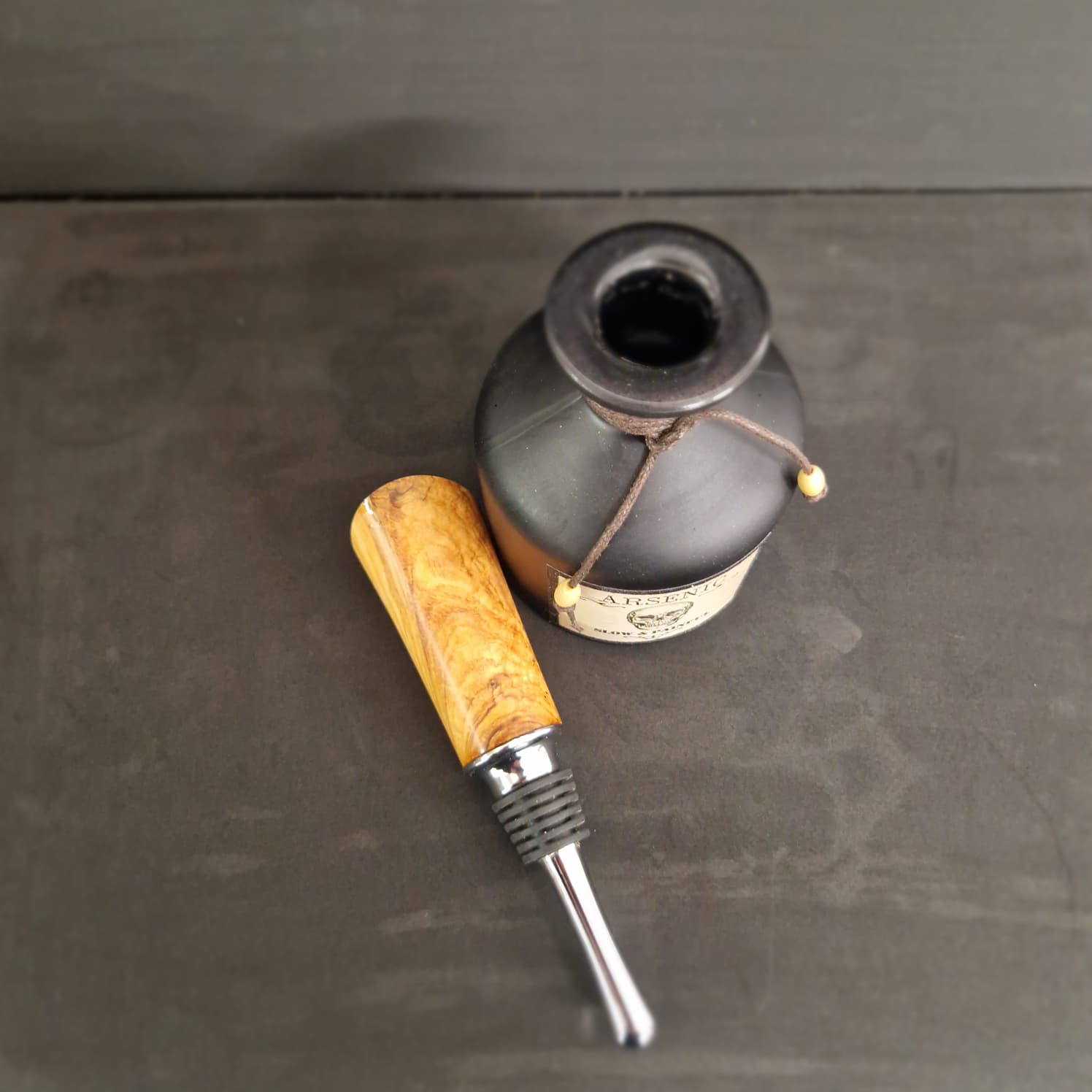 Elégant et authentique, ce bouchon de bouteille est entièrement façonné à la main à partir du Bois Olivier Africain. Un bois noble réputé pour sa solidité et ses veinages naturellement uniques. Chaque pièce est une création originale, révélant des nuances chaleureuses allant du miel doré aux veines plus foncées.