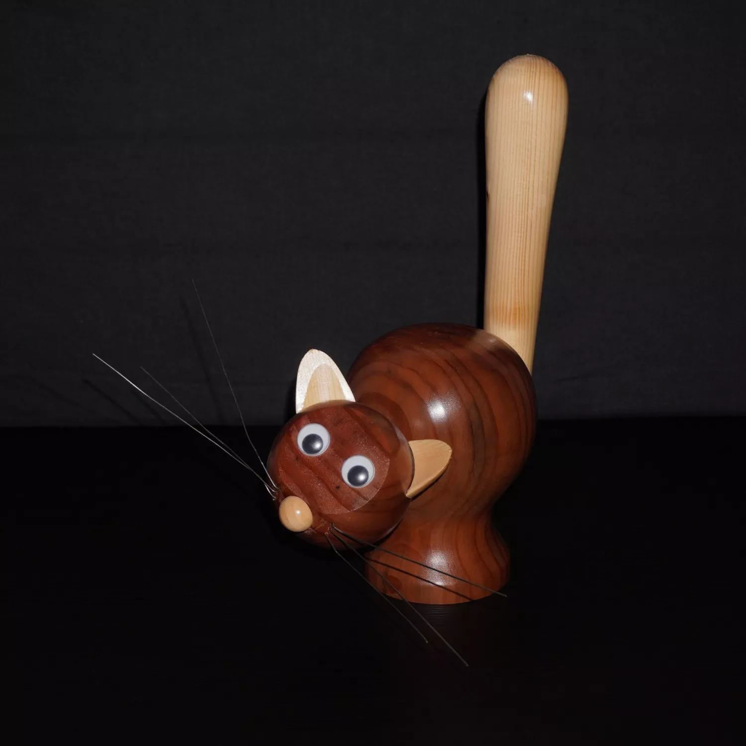Ce petit chat de bois est sculpté à la main, il veille en silence. Un compagnon tendre, malicieux et unique, prêt à trouver sa place chez vous et il raconte la douceur du temps qui passe. Il a clairement décidé de prendre sa retraite. Il ne miaule pas, ne perd pas ses poils, mais surveille absolument tout avec ses grands yeux curieux. Ses moustaches élégantes et sa posture fière en font un compagnon décoratif idéal pour qui veut un chat.. sans les bêtises qui vont avec.