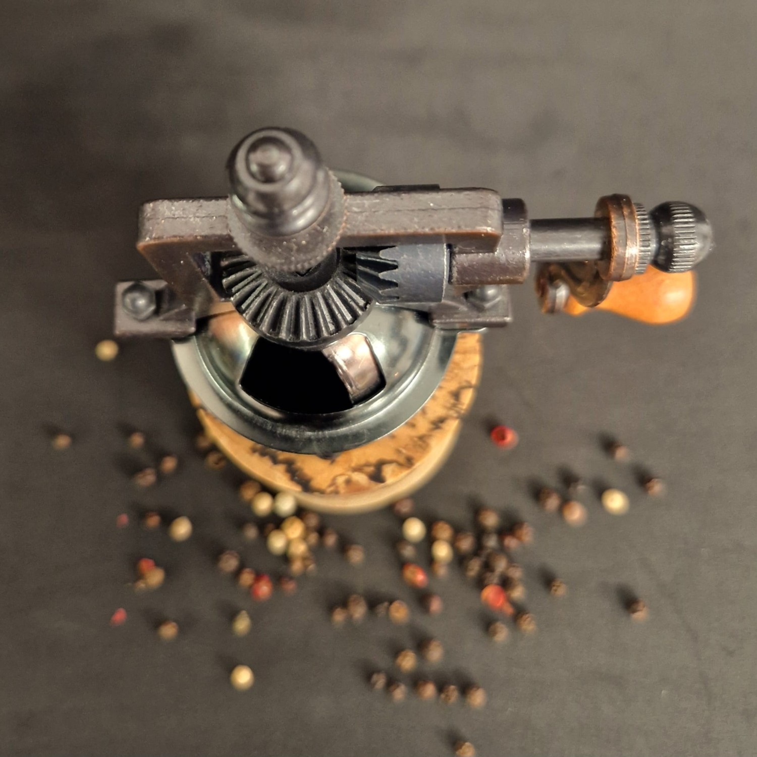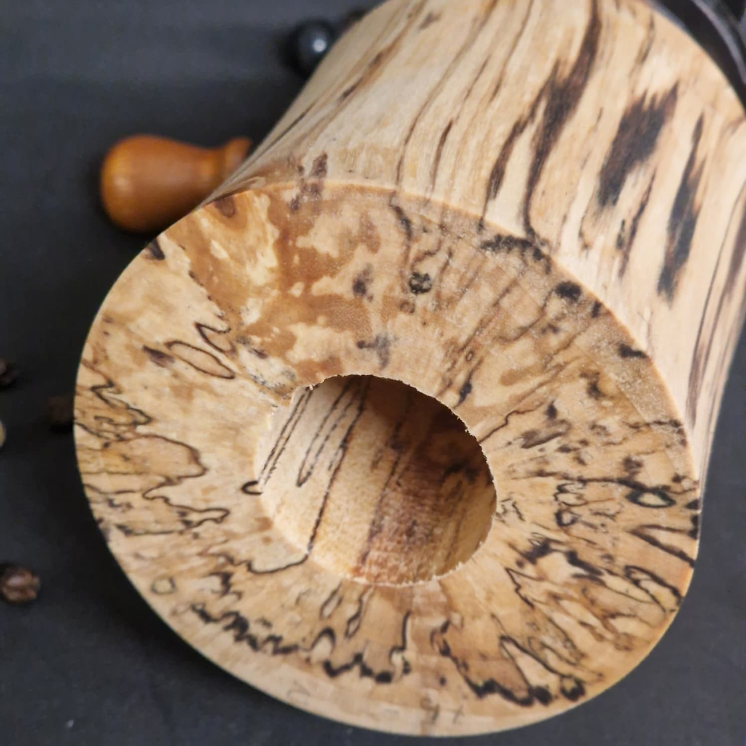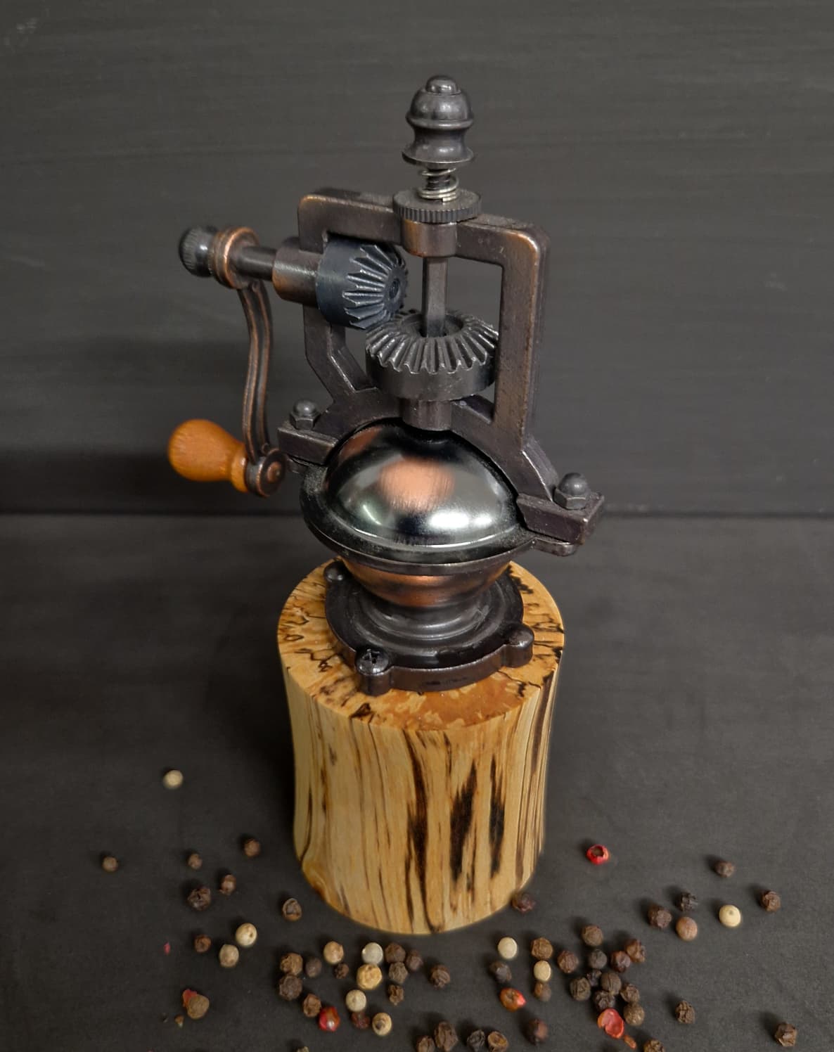 Elégant et plein de caractère, ce petit moulin vintage est une pièce unique entièrement façonnée à la main. Son corps en bois de bouleau tourné, aux veines naturelles marquées. lui confère un charme brut et authentique, tandis que son mécanisme en métal apporte une touche industrielle intemporelle.